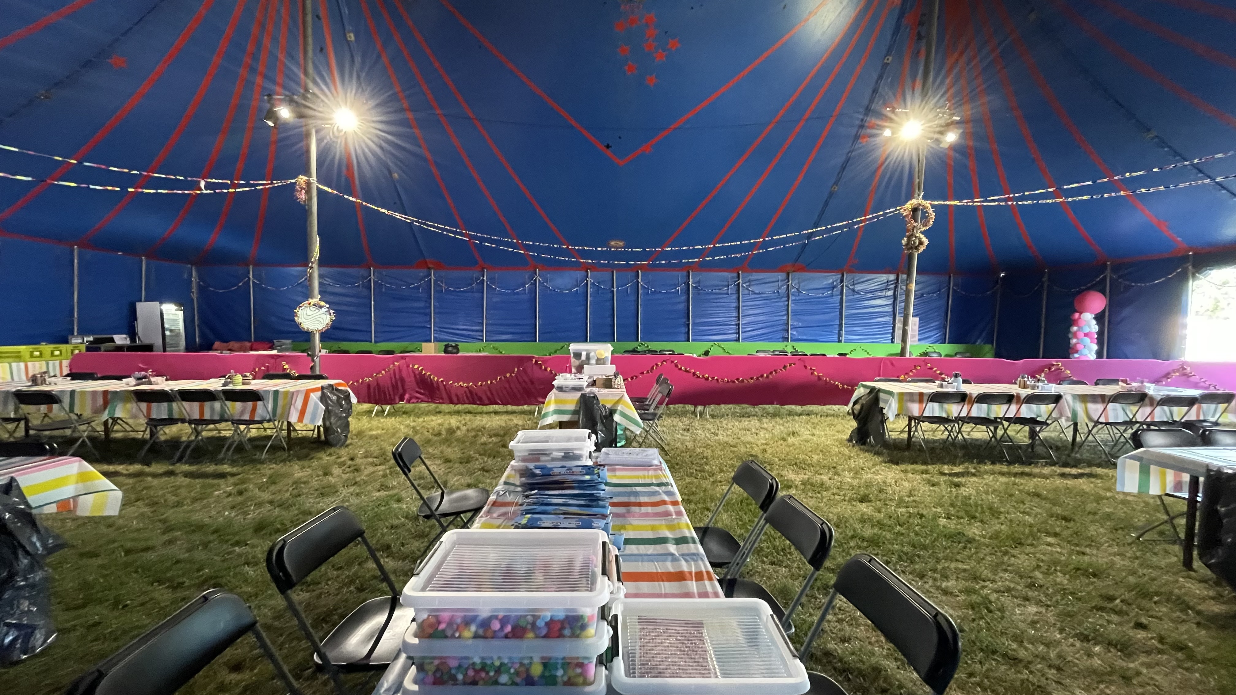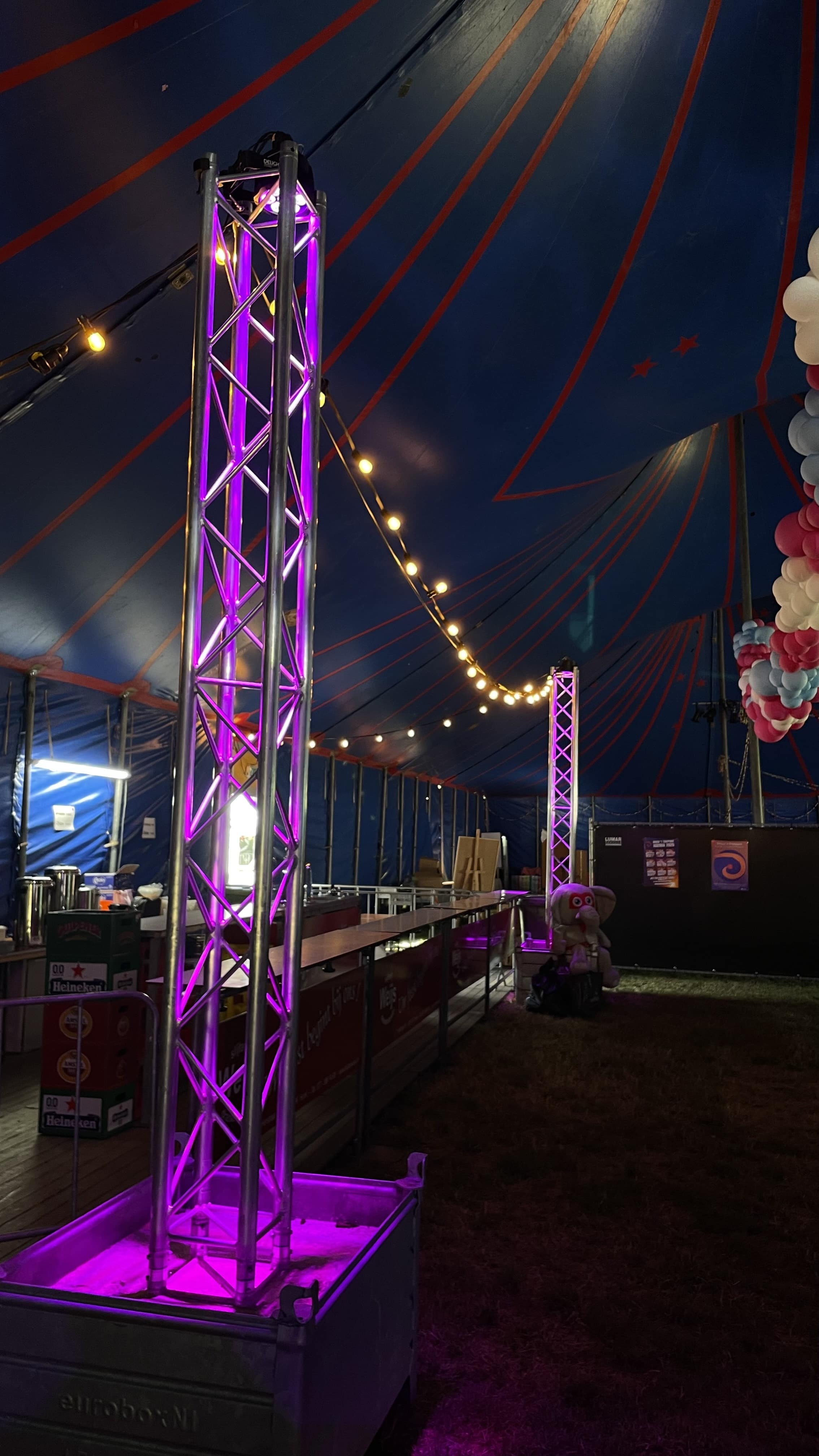 Dit jaar was de tent uitgevoerd met niet-lichtdoorlatende zeilen – anders dan voorgaande jaren. Daardoor viel er overdag geen natuurlijk licht naar binnen. Om ook bij daglicht voldoende zicht en een veilige omgeving te garanderen, hebben we extra verlichting geïnstalleerd. Een praktische oplossing die ervoor zorgde dat alle activiteiten voldoende verlicht waren.