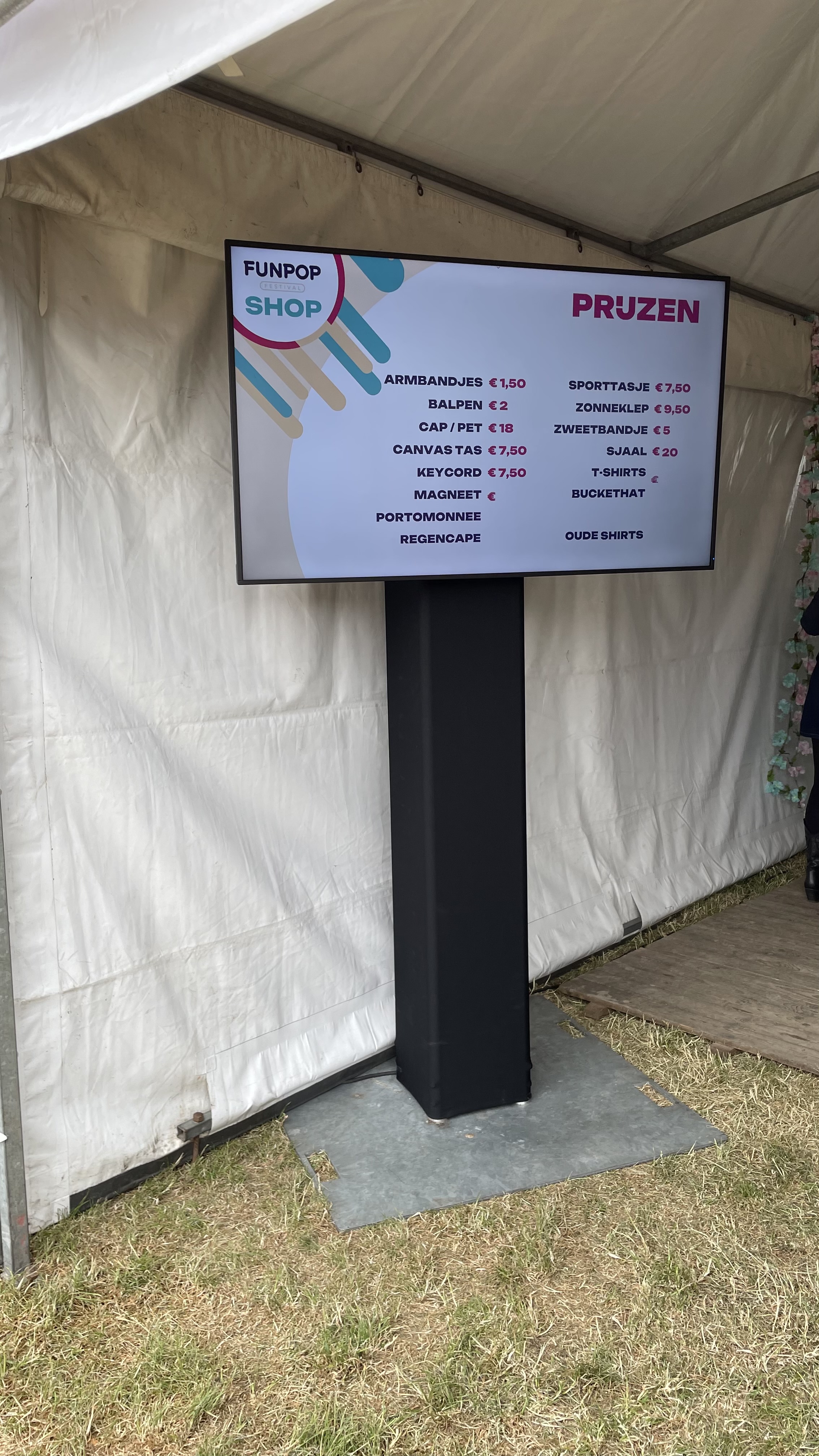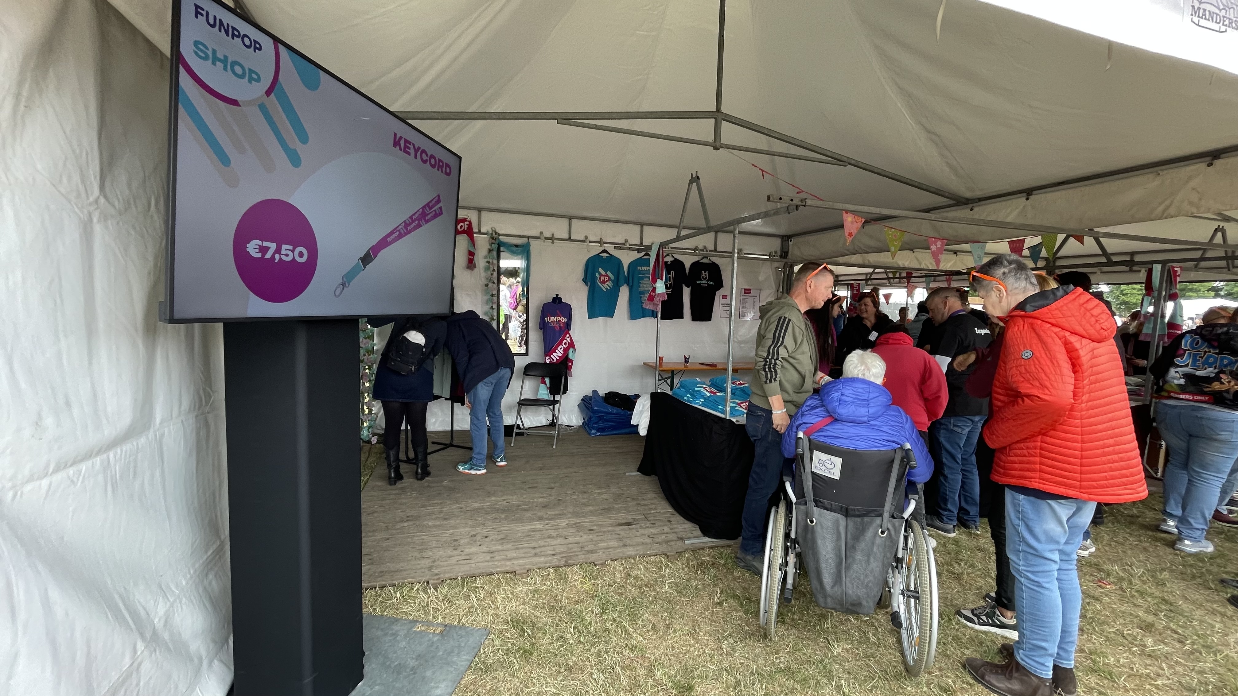 Als kers op de taart verzorgden we ook beeldtechniek in de officiële Funpop merchandise shop. Op de schermen werden de verschillende shop items actief gepromoot – een effectieve manier om bezoekers te informeren en de verkoop te ondersteunen.
